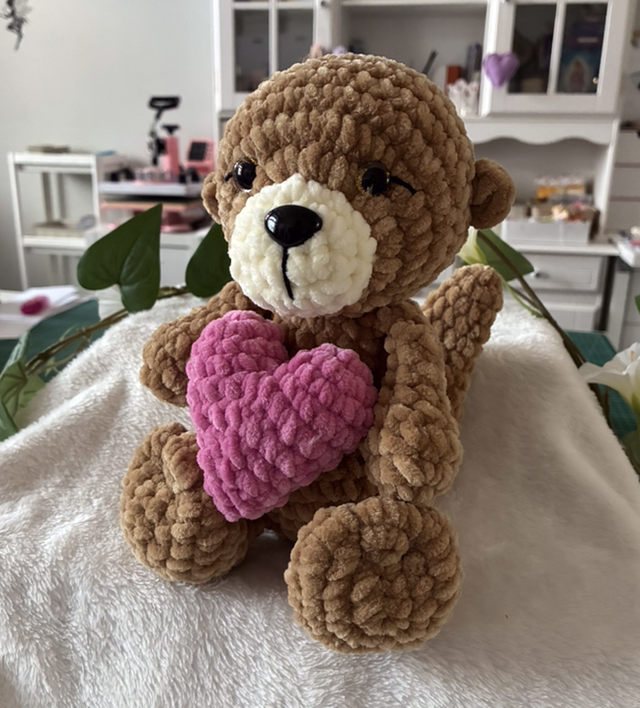Dieser zauberhafte gehäkelte Otter hält ein rosa Herz ganz fest bei sich – als kleines Zeichen von Liebe und Geborgenheit. Mit viel Sorgfalt handgemacht und ca. 30 cm groß, ist er wunderbar weich und perfekt zum Kuscheln, Liebhaben und Verschenken.